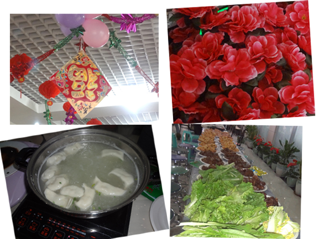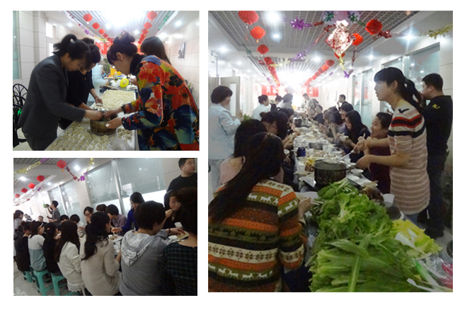 前一天我院工作人员用气球和拉花布置好了活动场地,红红的大福字照映着每个人脸上的笑容。今天一早大家就开始为活动忙碌着,大家包饺子,摆拼盘忙得不亦乐乎。小小的饺子包着的是一份浓浓的奥新全民情,一份同事之间的关怀,一份领导对我们的关爱......