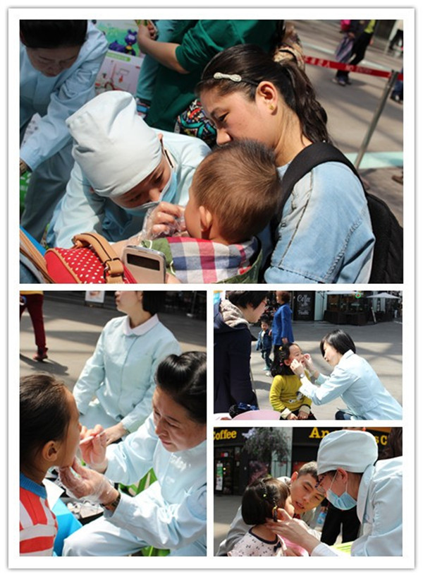 口腔保健从刷牙开始,很多大人不知道如何正确刷牙,又怎么教孩子正确刷牙呢?现场我们的医生护士还教会家长跟宝贝们如何正确有效的刷牙。