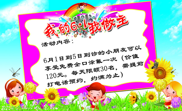 缤纷“六一”,健康童年——目测还有两周左右就到六一啦!奥新全民口腔医院儿童牙齿保健护理中心将在宝贝们的节日里,为小朋友们送上一份健康大礼哦!了解详情请往下看: