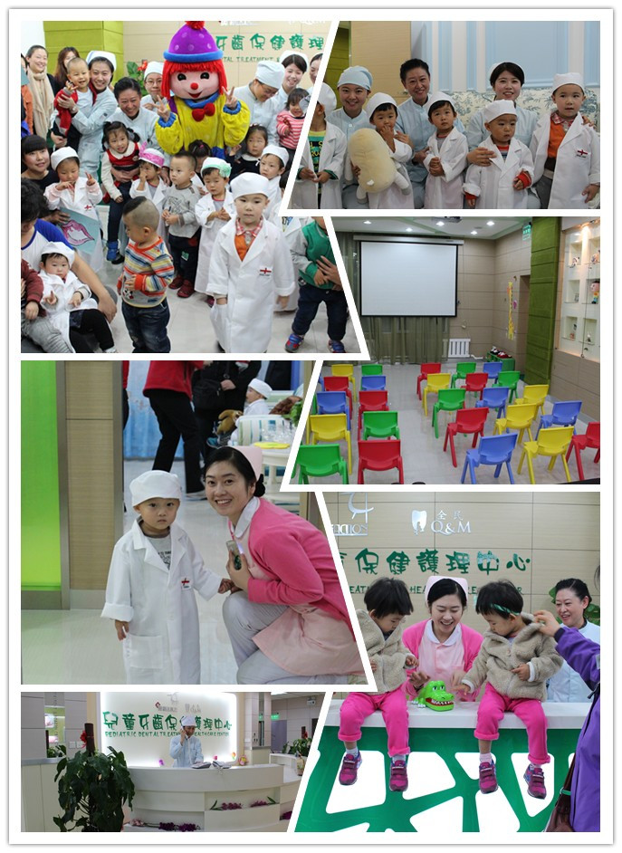 11月10日奥新全民口腔医院儿牙中心联合金宝贝早教中心,举办第一期儿童牙齿保健亲子小课堂活动,活动期间我院儿牙医生给现场的家长以及小朋友们普及儿童口腔健康知识,气氛活跃,医生、家长跟小朋友间积极互动,积极参与、每位宝宝身穿白大衣,俨然一个小牙医,开始一段做牙医的小体验,让宝宝们对看牙这件小事态度有所改观,现场积极互动、游戏,让家长和小朋友都轻松了解一些简单的口腔常识,努力做好牙齿保健。
