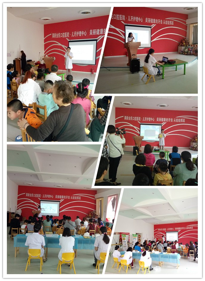 奥新口腔医院杨院长带领儿牙中心郭淑敏主任等四位儿牙医生,共同参与本次活动,郭淑敏主任为到场的小观众及家长们耐心的讲解关于儿童牙齿方面的治疗及保健常识,呼吁大家,牙齿健康,要从娃娃抓起!