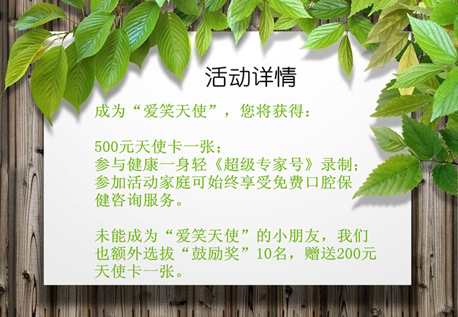 2、参与条件:2——8岁,已经加入或即刻加入奥新全民口腔医院儿牙档案库的小朋友。