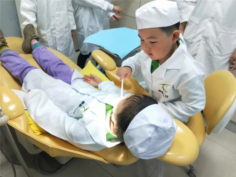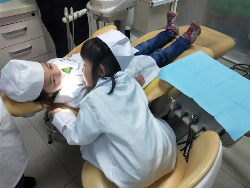 经过一系列的学习,小牙医们终于要操练起来啦!根据分组,紧密有序的进入诊室,“职业生涯”就此开启。跟“前辈们”学习,小牙医在“前辈的指导下给小伙伴检查牙齿,是不是很像样!